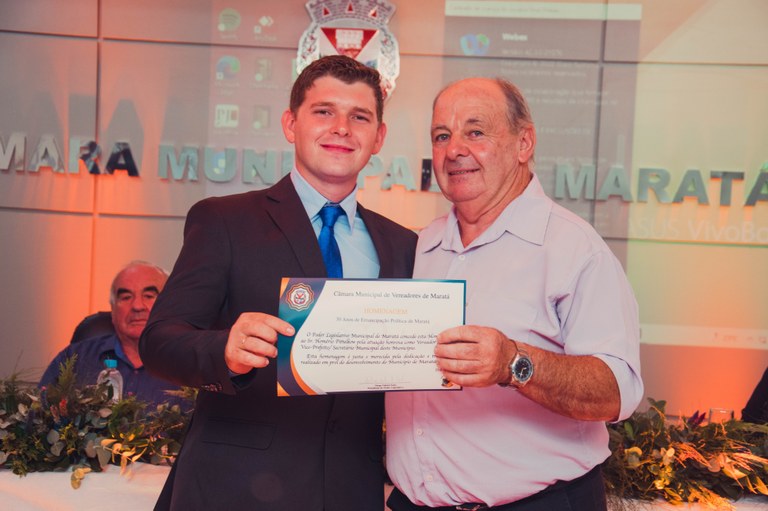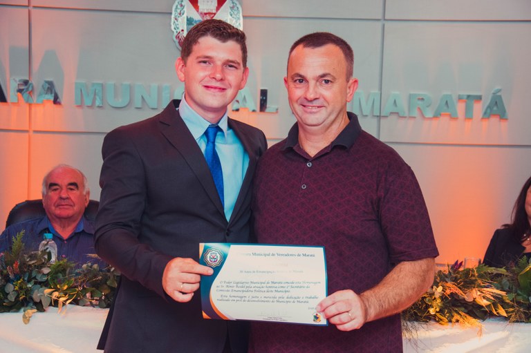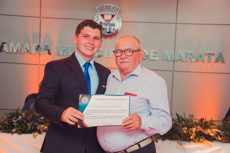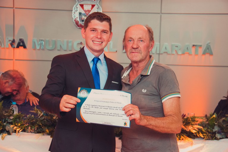 Gratidão e Reconhecimento marcam homenagem aos políticos que trabalharam em prol do desenvolvimento do nosso Município, bem como aos membros da Comissão Emancipadora que honradamente conquistaram a emancipação de Maratá. Com a proposta de resgatar a memória e lembrar aqueles que já governaram o município, no dia 23 de março de 2022, a Câmara Municipal de Vereadores promoveu a Sessão Solene em celebração ao 30° aniversário da emancipação político-administrativa do município. No ato da Sessão Solene, foi entregue um Certificado de homenagem pela dedicação e trabalho realizados em prol do desenvolvimento do município de Maratá